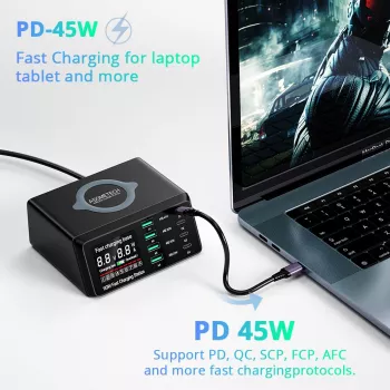 110W 8-Port USB C Fast Charger with Wireless Charging Station